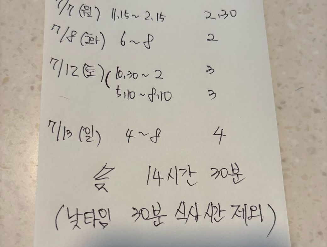 이와 별개로 식사시간 등 휴게시간은 유급처리하는 시간에서 제외될 수 있습니다.
