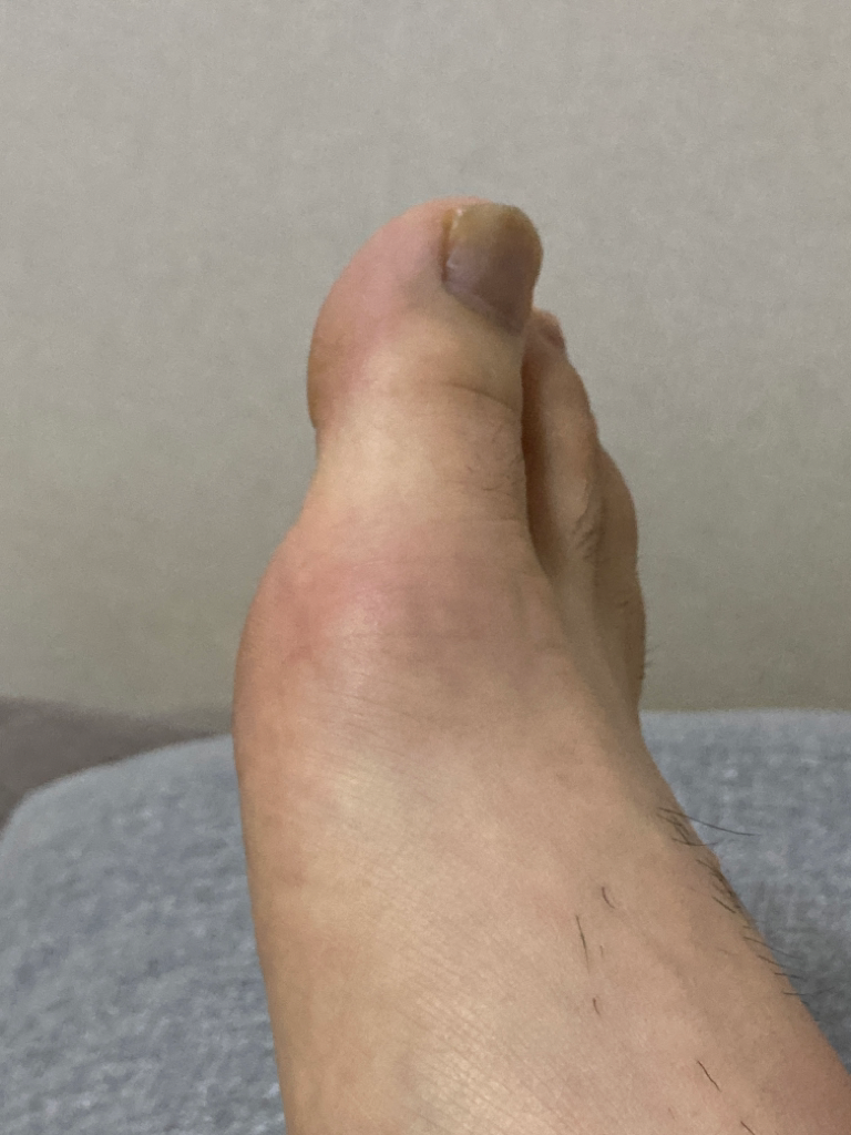 겉으로 보이는 소겯만 가지고 구체적인 감별 진단은 가능하지 않습니다. 통풍으로도 사진처럼 부을 수 있고 염좌여도 마찬가지인 상황이기 때문에 구체적인 감별 진단을 위해서는 검사를 받아볼 필요가 있겠습니다. 정형외과 진료 및 검사를 통한 구체적인 감별 진단을 받으시고 적절한 치료를 진행하시길 권고드립니다.