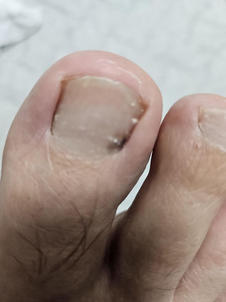 언제 어디서 다쳤는데 모르겠는데 엄지발가락 안쪽에 멍자국처럼 있네요. 가만히 놔두면 자연치료가 되는지 병원가야하는지 궁금합니도