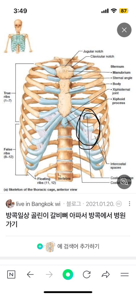 왼쪽으로 치우친 통증이 있다면 식도나 위장의 문제를 먼저 고려할 수 있습니다. 움직임과 관련된 통증이라면 연골염과 같은 근골격계 문제도 고려할만한 상황입니다.