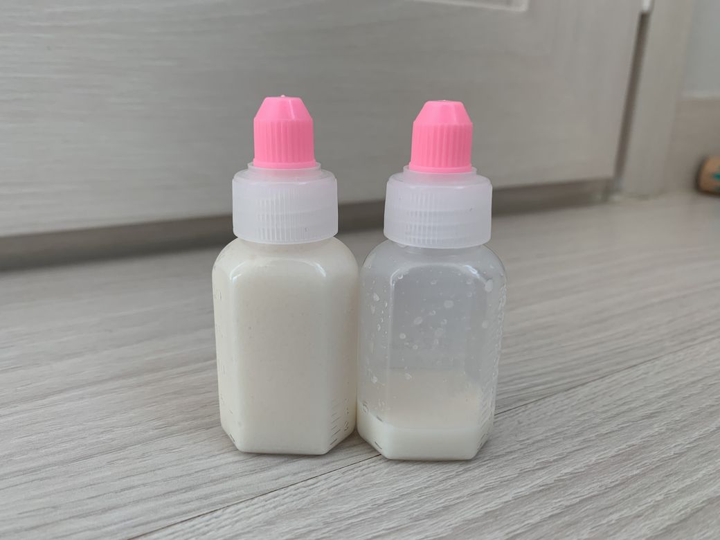 원래 시간 지나면 약간 색깔 변하니 잘섞어서 먹이시고, 다시 냉장보관하시길 바랍니다.