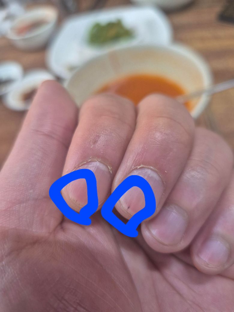 손톱 끝에 검은색 반점? 줄? 질문드립니다