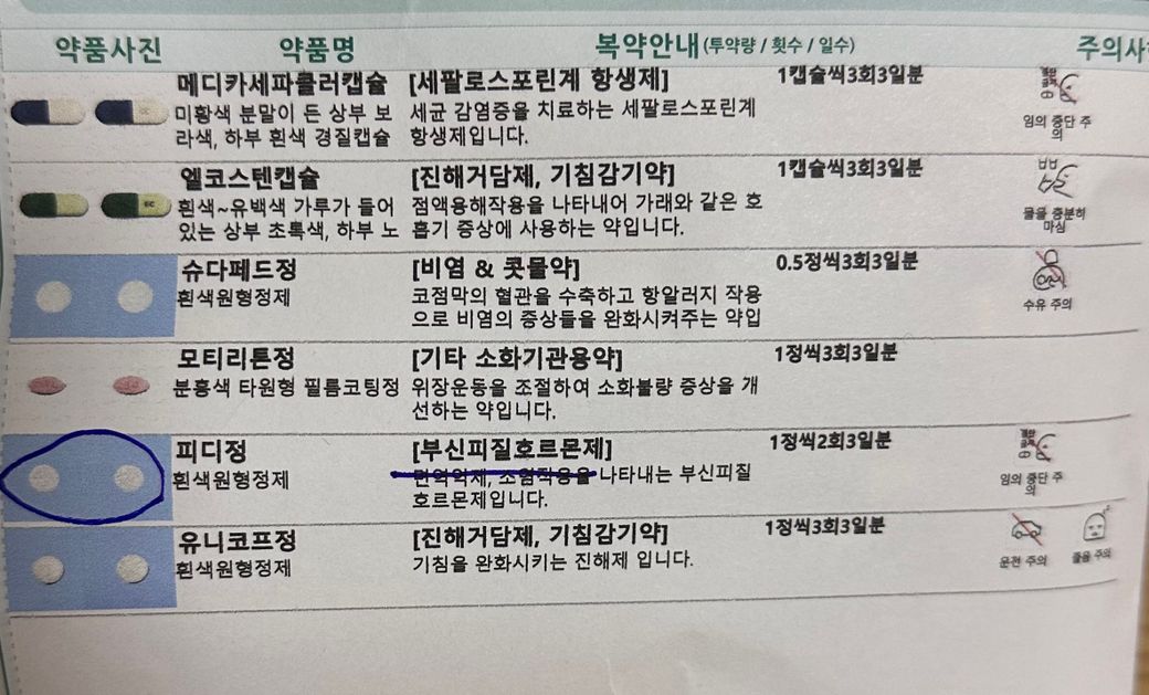 제가 엊그제부터 감기 증상으로 병원에서 이틀분 약을 받아서 먹고 오늘 여전히 아프길래 병원에 가서 다시 약을 받아왔는데요
