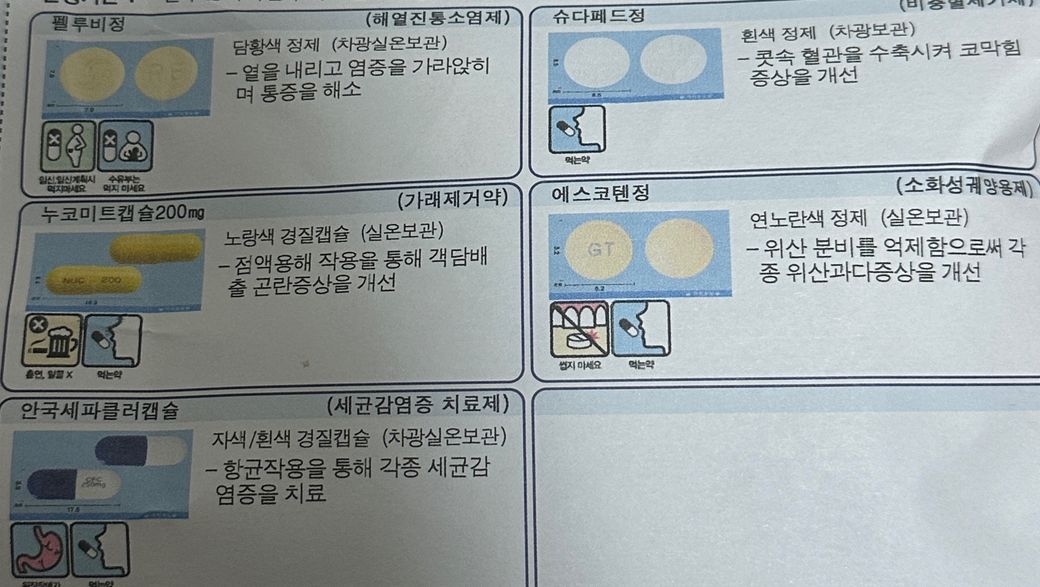 코감기때문에 약처방을 받아서 먹었는데도 콧물이 계속 나와서 코 푸느라 머리가 너무 아파졌어요,, 처방 받은 저녁 약은 2시간 전에 먹었는데 자기 전에 타이레놀을 추가로 먹어도 될 지 궁금해요!