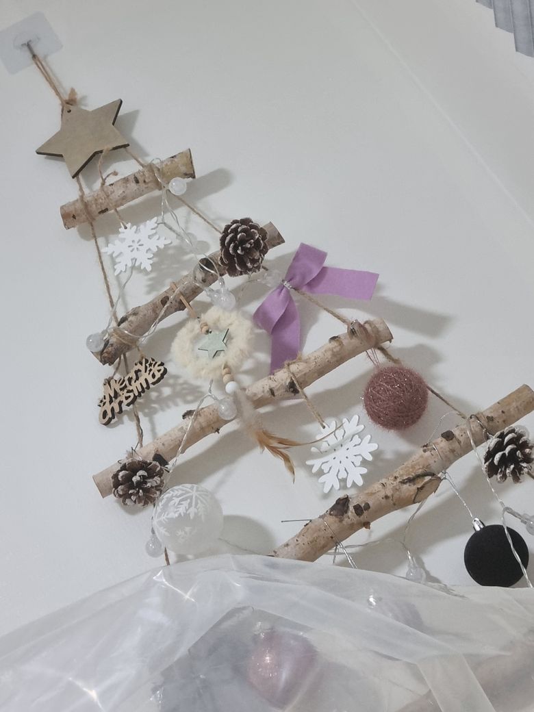 크리스마스 이후 계속 벽에다 걸어놔서 먼지도 많이 쌓였을것 같은데 나무로 된 재질이라 정전기포같은걸로 닦으면 나무가 거칠어서 걸릴것 같더라구요