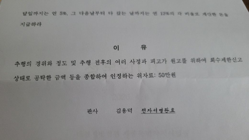 판결문 내용도 올립니다. 경험 많으신 변호사님 들이 답변 부탁드립니다.