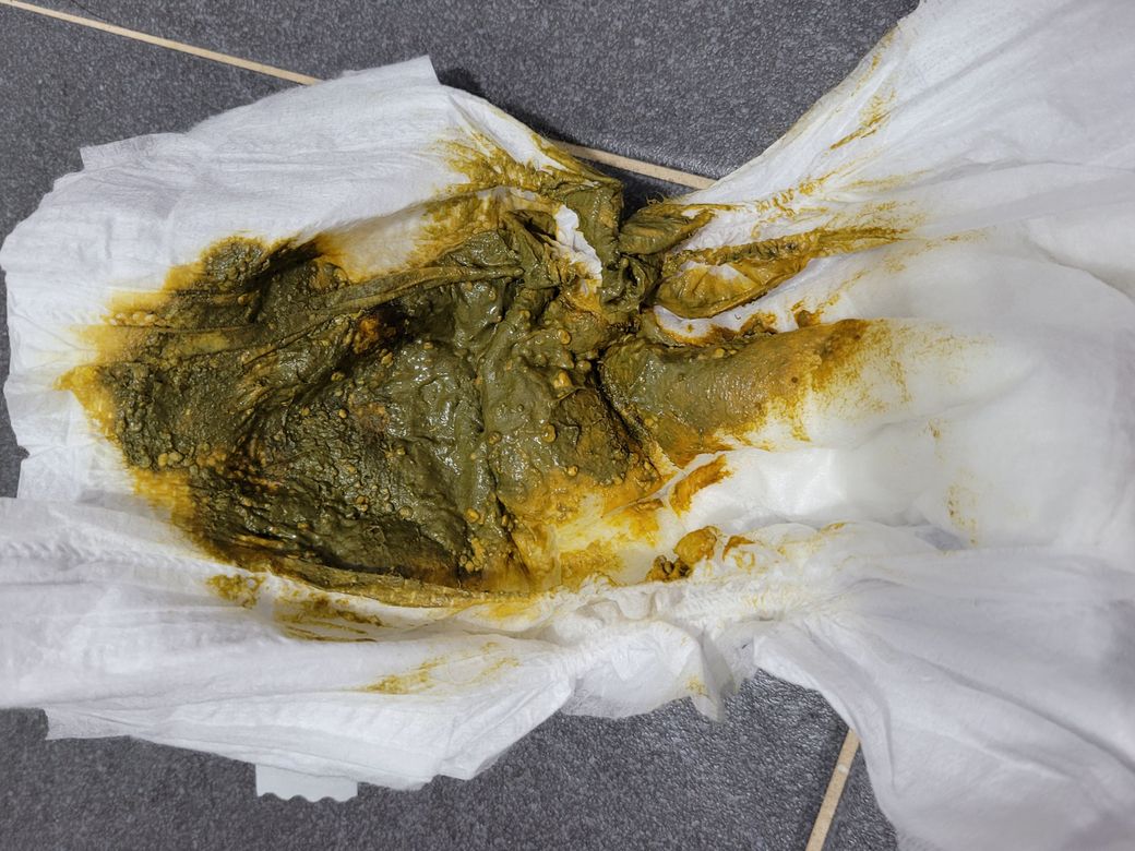 우리가 그렇듯 아이도 소화를 도와주는 <담즙>이 나오기 시작하면 변은 태변(진한 갈색변)에서