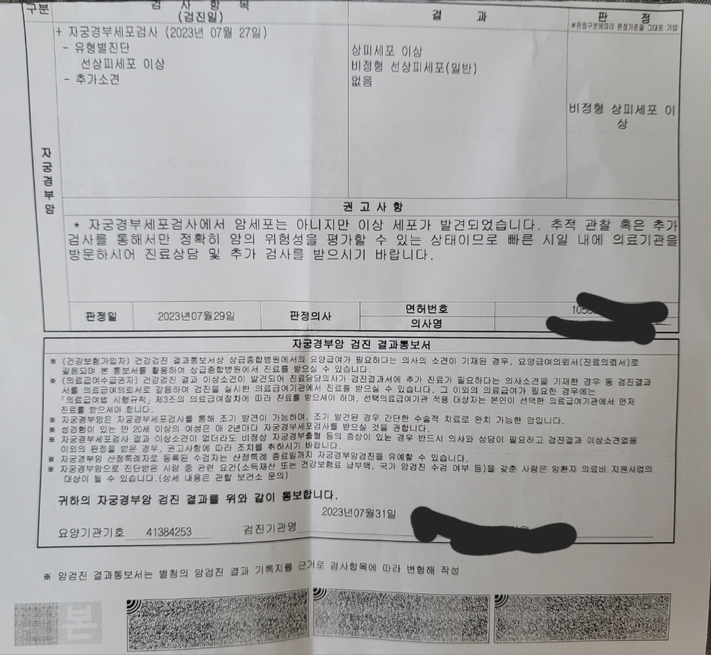 아직 이상한 세포가 보이는 정도라고만 봐야 합니다. 그래서 추가 검사를 해서 실제 암세포가 있는지, 아닌지를 알 수 있는 것이구요. 일단은 확정된 결과는 아니라서 답을 드리기가 참 애매합니다. 부디 추가 검사에서 좋은 결과 있기를 바랍니다.