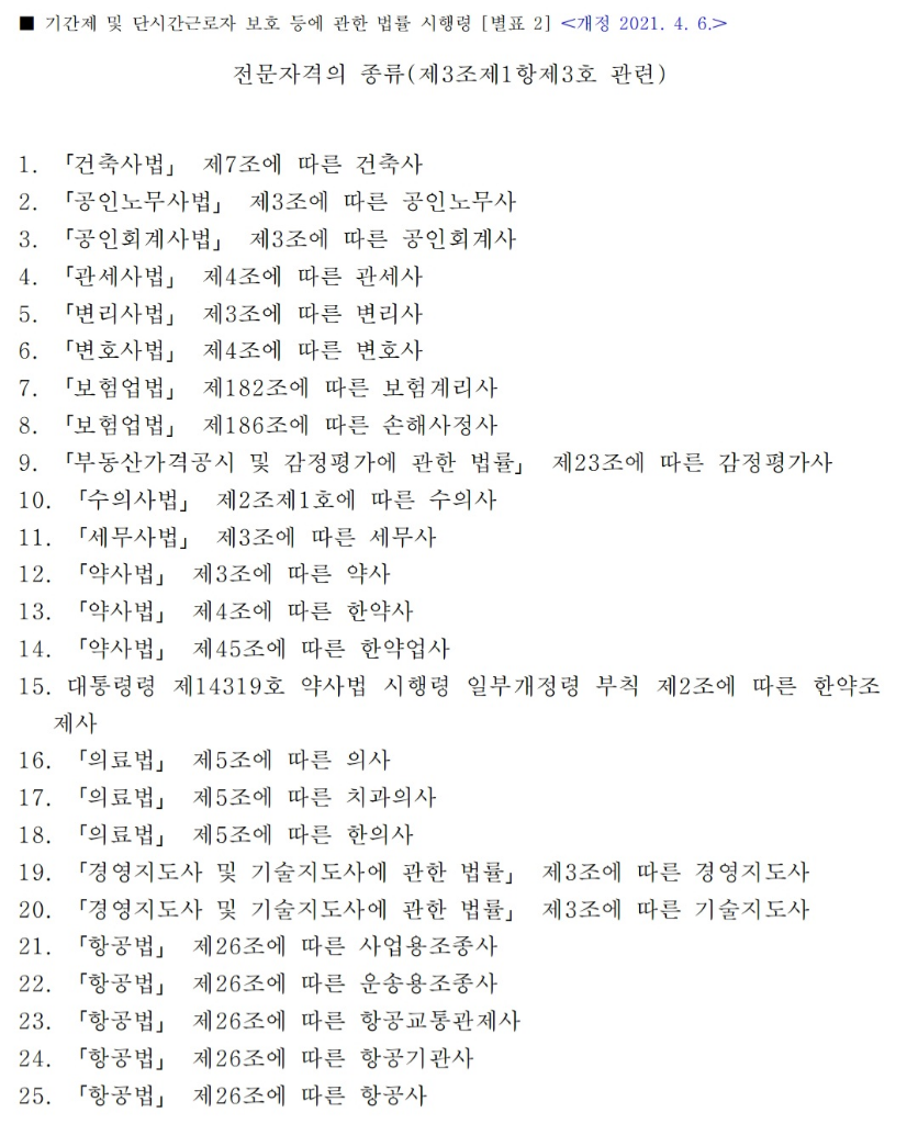 3. 별표 2에서 정한 전문자격을 소지하고 해당 분야에 종사하는 경우