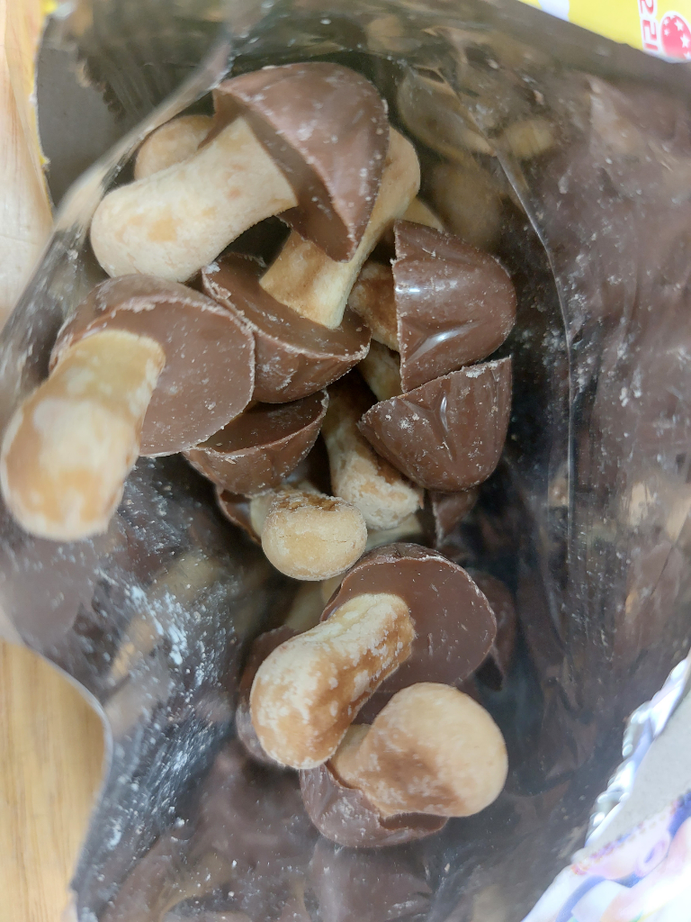 곰팡이가 아닌 초콜릿 건조과정에서 생기는 현상이거나, 과자 부스러기, 혹은 초콜릿 겉표면에 생채기가 생겨 그렇게 보이는 것이니 안심하고 드셔도 좋습니다.