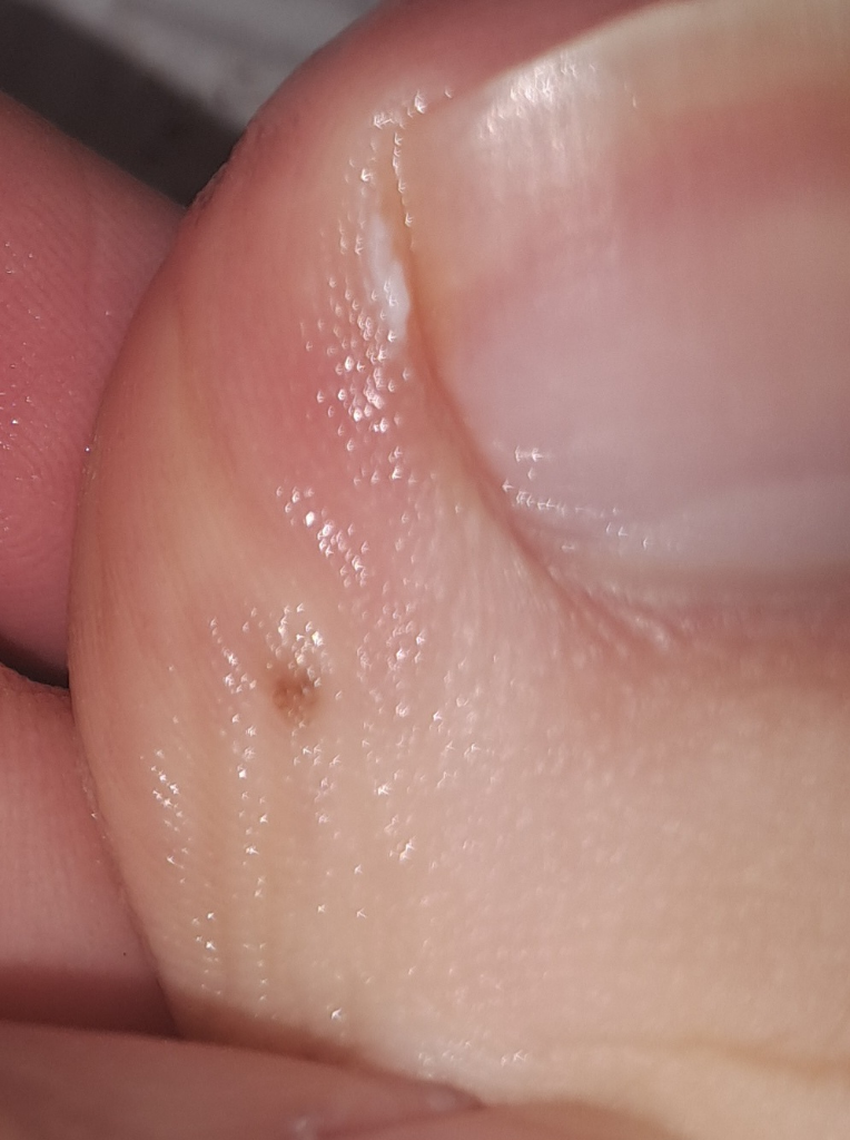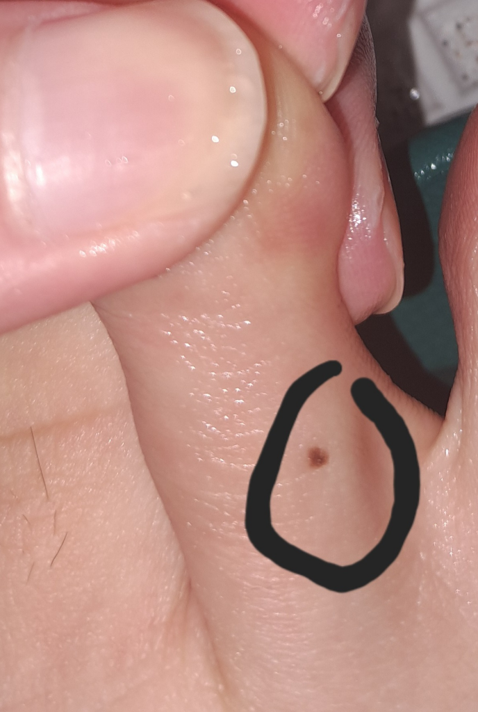 사진의 소견들을 통해서 미뤄 보았을 때에 점의 모양이 찌그러져 있거나, 점의 경계가 불분명하지 않고, 점이 튀어나온 양상도 아니기 때문에 흑색종을 의심해볼 수 있는 소견들이 따로 보이지 않습니다. 흑색종 피부암의 가능성은 낮아 보이고 그냥 점일 가능성이 가장 높아 보입니다. 그렇지만 어디까지나 가능성을 보는 것일 뿐 피부의 외관적인 소견만 가지고 확실하게 감별 및 배제할 수 없기 때문에 걱정되신다면 피부과에서 조직 검사를 받아보시는 것이 가장 안전한 방법입니다.