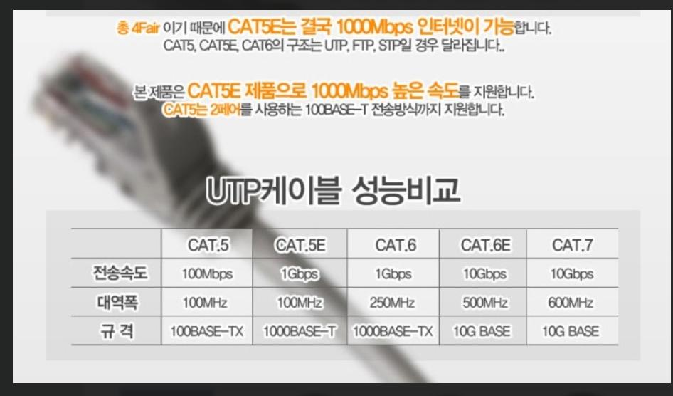utp케이블 cat5, cat6,cat7 차이점이 뭔가요?