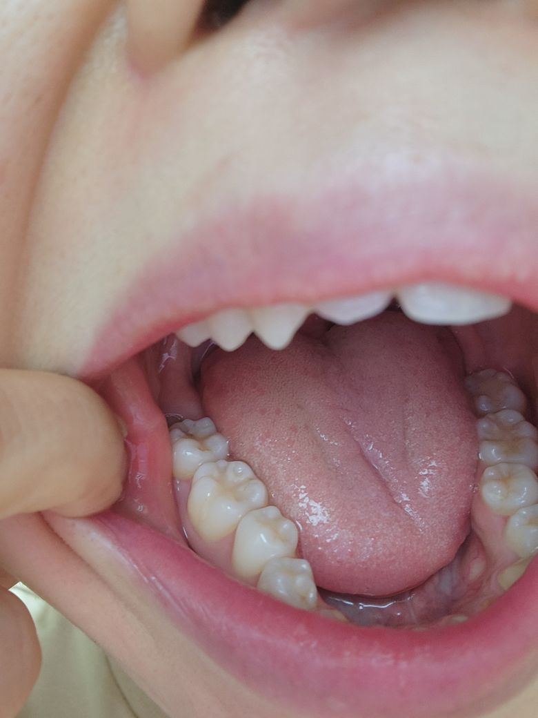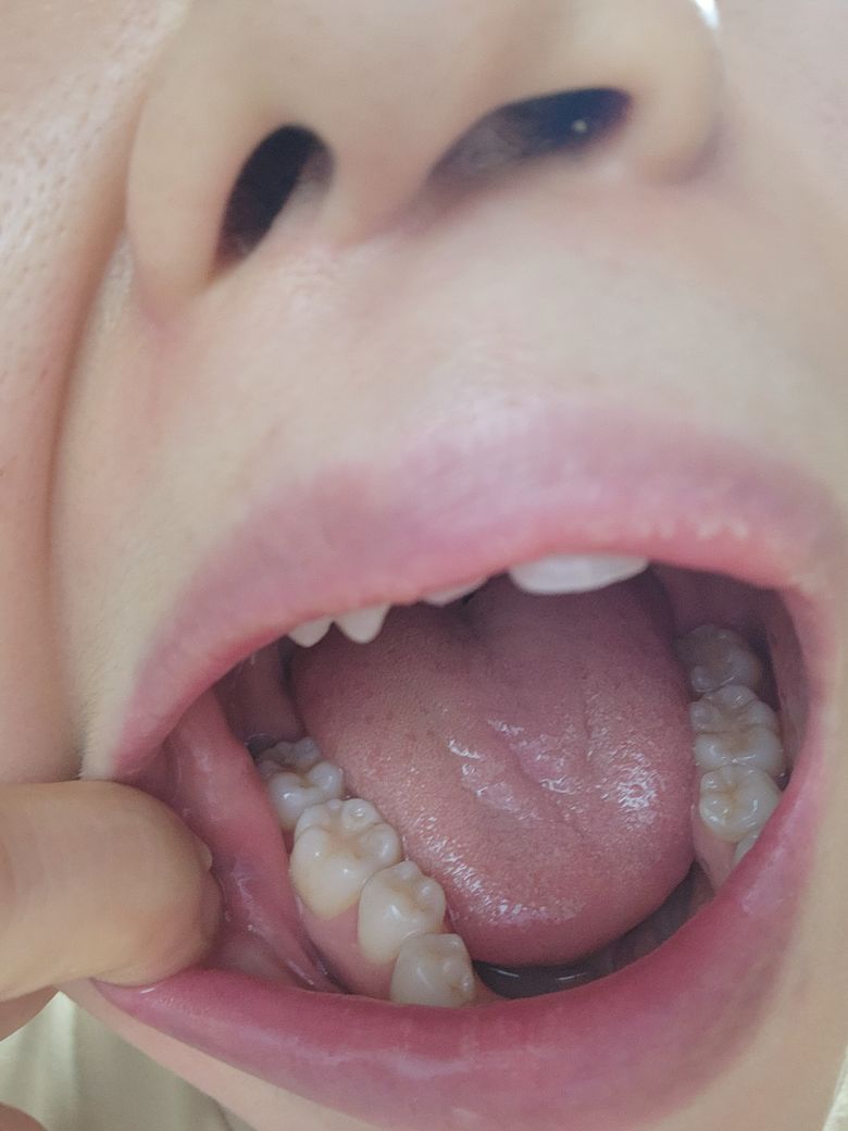 사진 상으로 보이는 왼쪽 어금니는 현재로서는 충치가 있다고 판단하기에는 애매한 점이 있습니다. 사진이 정확히 보이지 않습니다. 다만 어금니 뒤쪽에 사랑니가 보이며 사랑니가 일부 충치가 생겼을 가능성은 높아 보입니다.