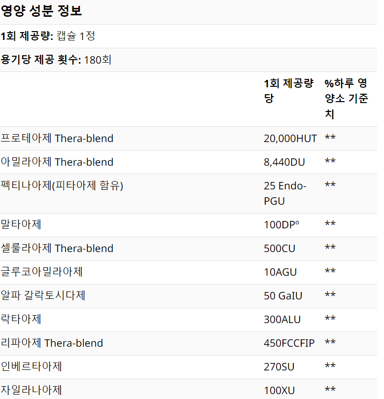복용 하려는 영양제는 Enzymedica, Digest Basic, 필수 효소 포뮬라, 캡슐 180정,Thorne Research, GI-Encap 입니다.