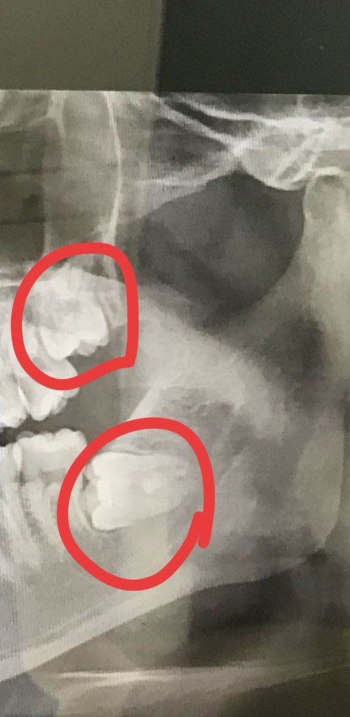 네 둘다 매복사랑니이고 발치과정에서 잇몸 절개하고 잇몸뼈 일부삭제는 불가피할 것 같습니다