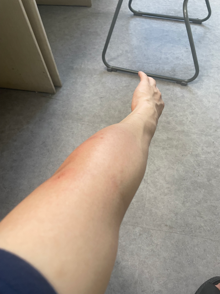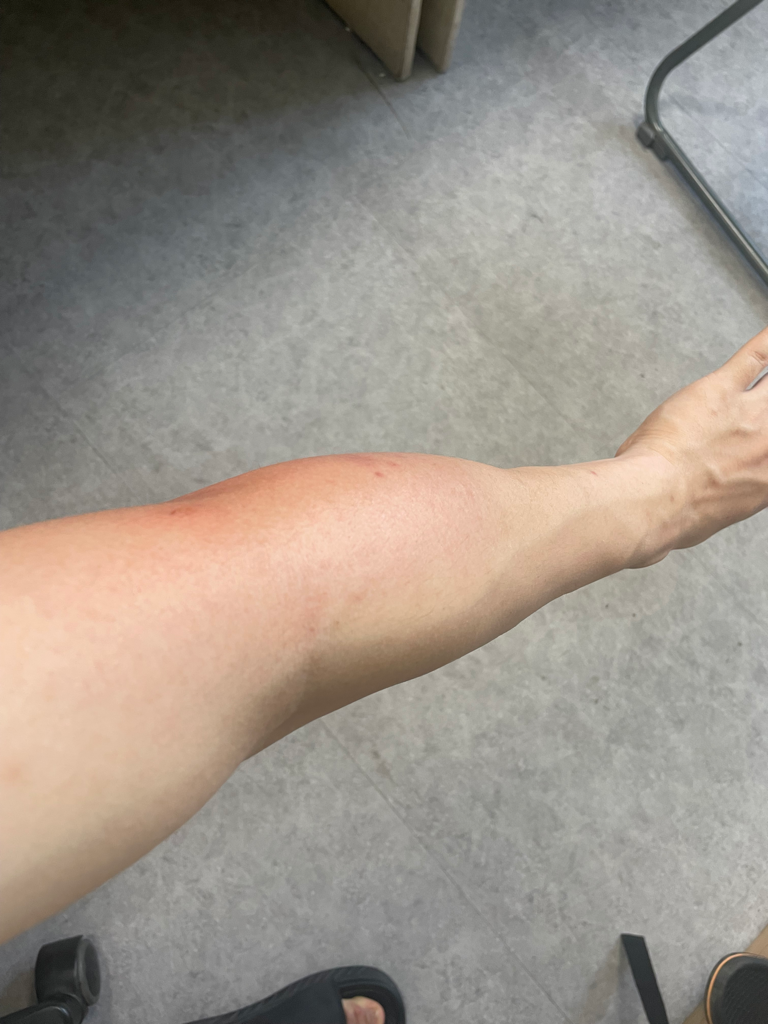 지금은 단순히 이 히스타민에 의한 반응으로 보이지 않고 봉와직염이 생긴 상황으로 보입니다.