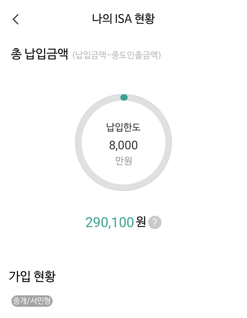 중개형이며 서민형으로 isa 계좌에 가입된 것으로 확인됩니다.