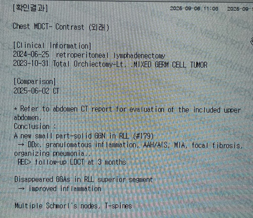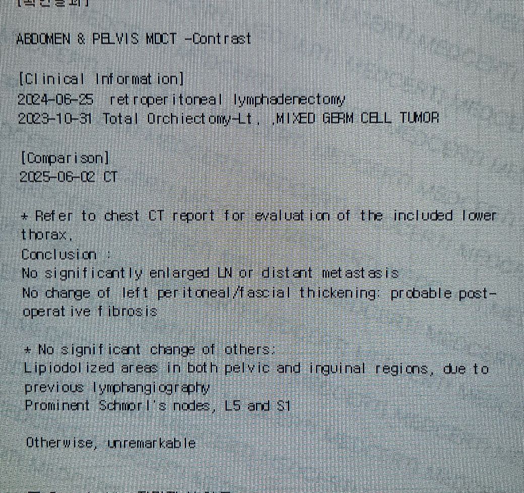 고환암치료후 추적검사 CT인데 해석부탁드립니다