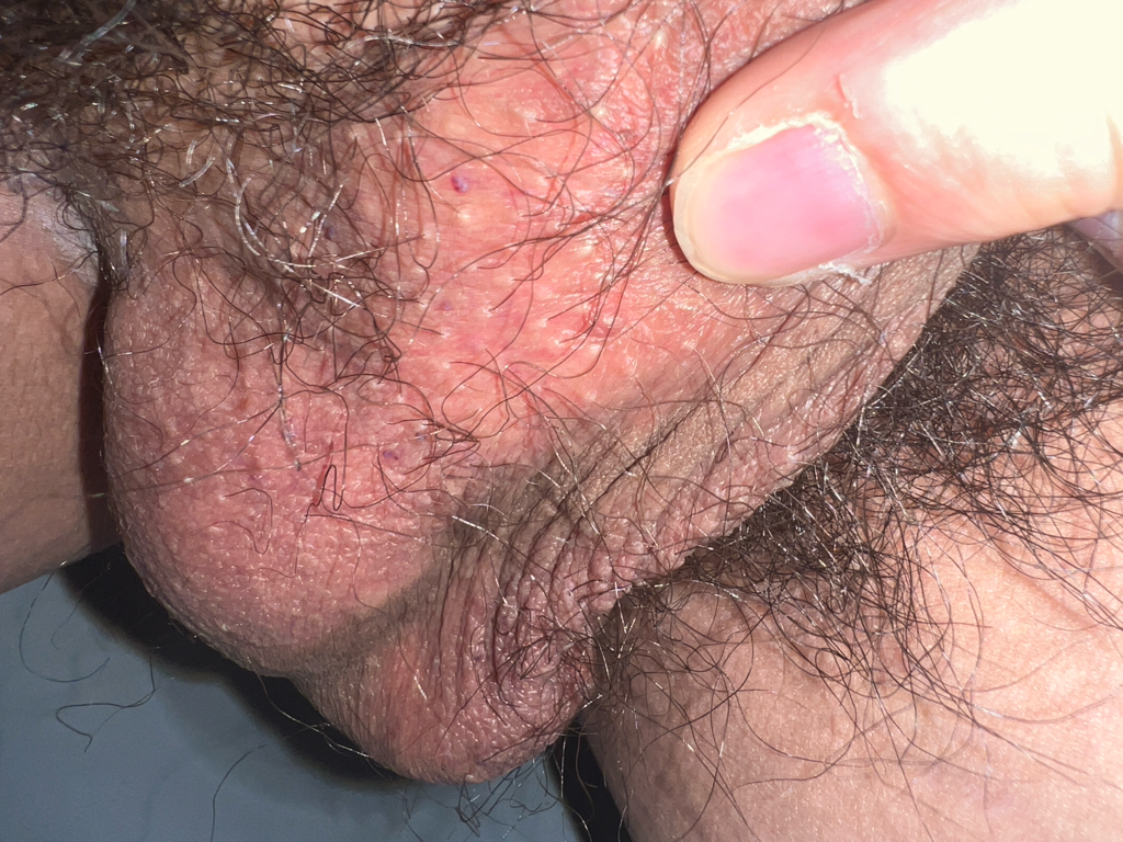 귀하의 증상은 헤르페스의 초기 증상과 유사합니다. 헤르페스는 성관계를 통해 전염되는 바이러스성 질환으로, 물집이나 궤양이 생기는 것이 가장 흔한 증상입니다. 물집은 처음에는 빨갛고 부어오른 덩어리로 시작하여, 시간이 지나면서 터지고 궤양으로 변합니다. 궤양은 통증과 가려움증을 유발할 수 있습니다.