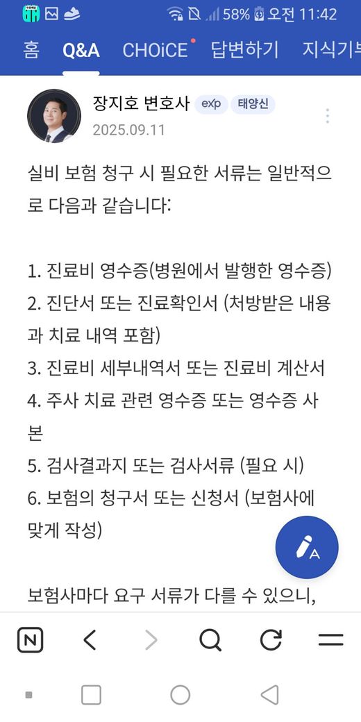 그리고 실비 보험회사에 내는 서류 종류좀갈켜주세요 오늘 맞고 서류띄어올려고 하거든요