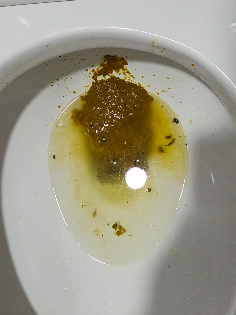 지방변은 보통 기름이 분리되어 물 위에 뜨거나 변 표면에 번들거리는 기름층이 보이고, 변이 물에 잘 가라앉지 않으며 악취가 강하고 변기에 기름이 묻는 특징이 있습니다. 현재 사진에서는 노란 액체가 일부 보이지만 명확한 기름층 분리나 기름 덩어리는 확인되지 않아 전형적인 지방변 소견으로 보기는 어렵습니다.