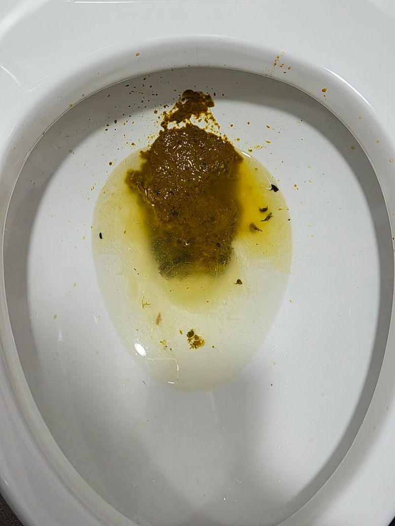 사진상 변은 형태가 유지되지만 가장자리가 흐리고 퍼지는 양상이어서 전형적인 설사보다는 무른 변에 해당합니다. 브리스톨 대변 형태 기준으로는 5형에서 6형 사이로 판단됩니다.