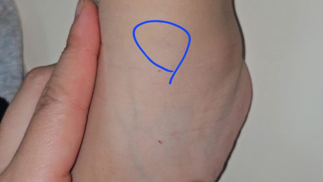 자세히보면 발목쪽 위에 동그라미 부분이 사진처럼 보이는데