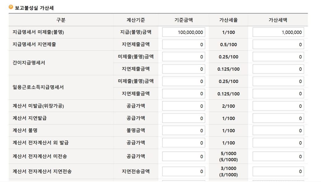 종합소득세 문의드립니다. 아래사진처럼 가산세 금액을 입력하면 되나요?