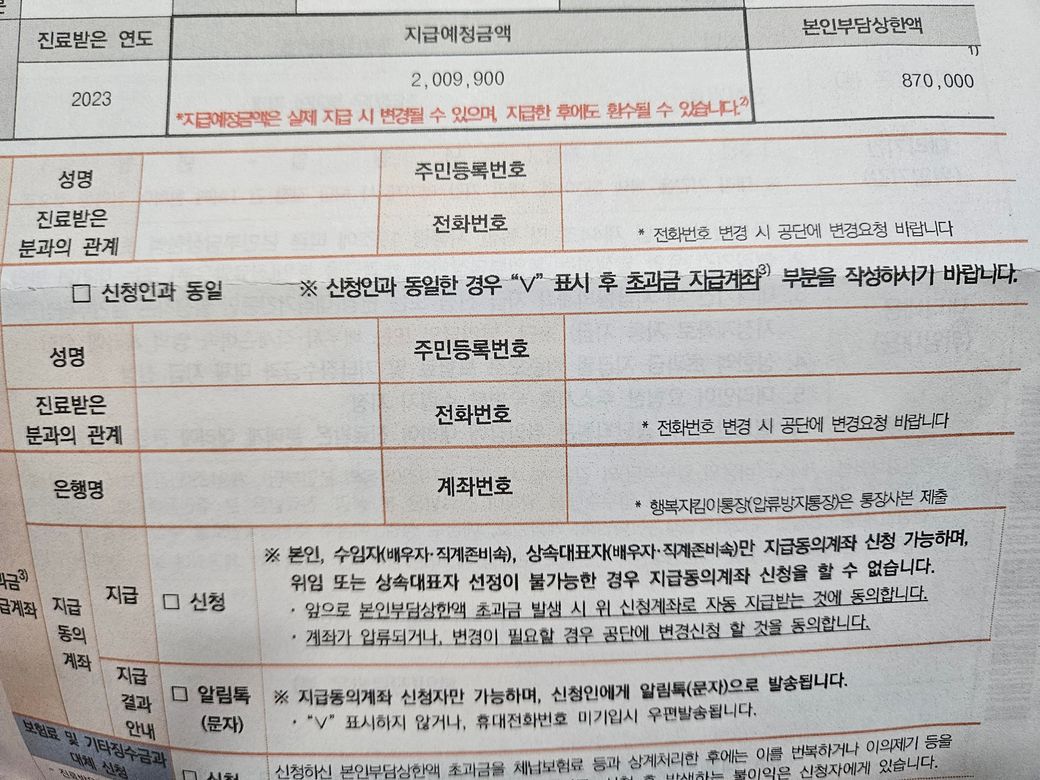 우선 지급예정금액에서 본인부담금을 제외한 금액을 환급해줍니다.