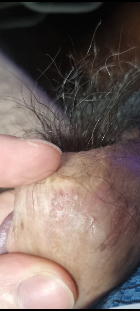 헤르페스 수포 및 곤지름, 진주양 구진 등의 감별이 필요하기 때문에 가까운 비뇨기과에 내원하시어 진료를 받아보시는 것을 추천드립니다.