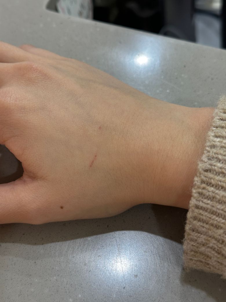 봉사 갔다가 6개월된 아기 강아지 놀아주고 왔습니다 집에 갈때 장갑 벗어보니 이정도 상처? 긁힘이 있어요