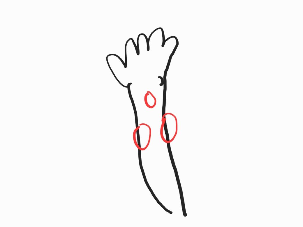 오른손 손등을 위로하게 해서 그린 그림입니다.