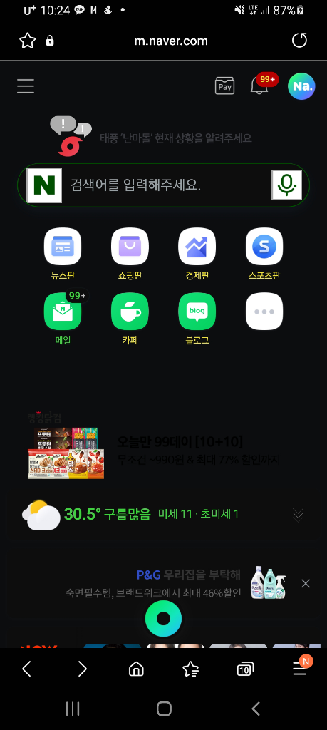 밝은 웹페이지라는게 있을겁니다 그거누르시면