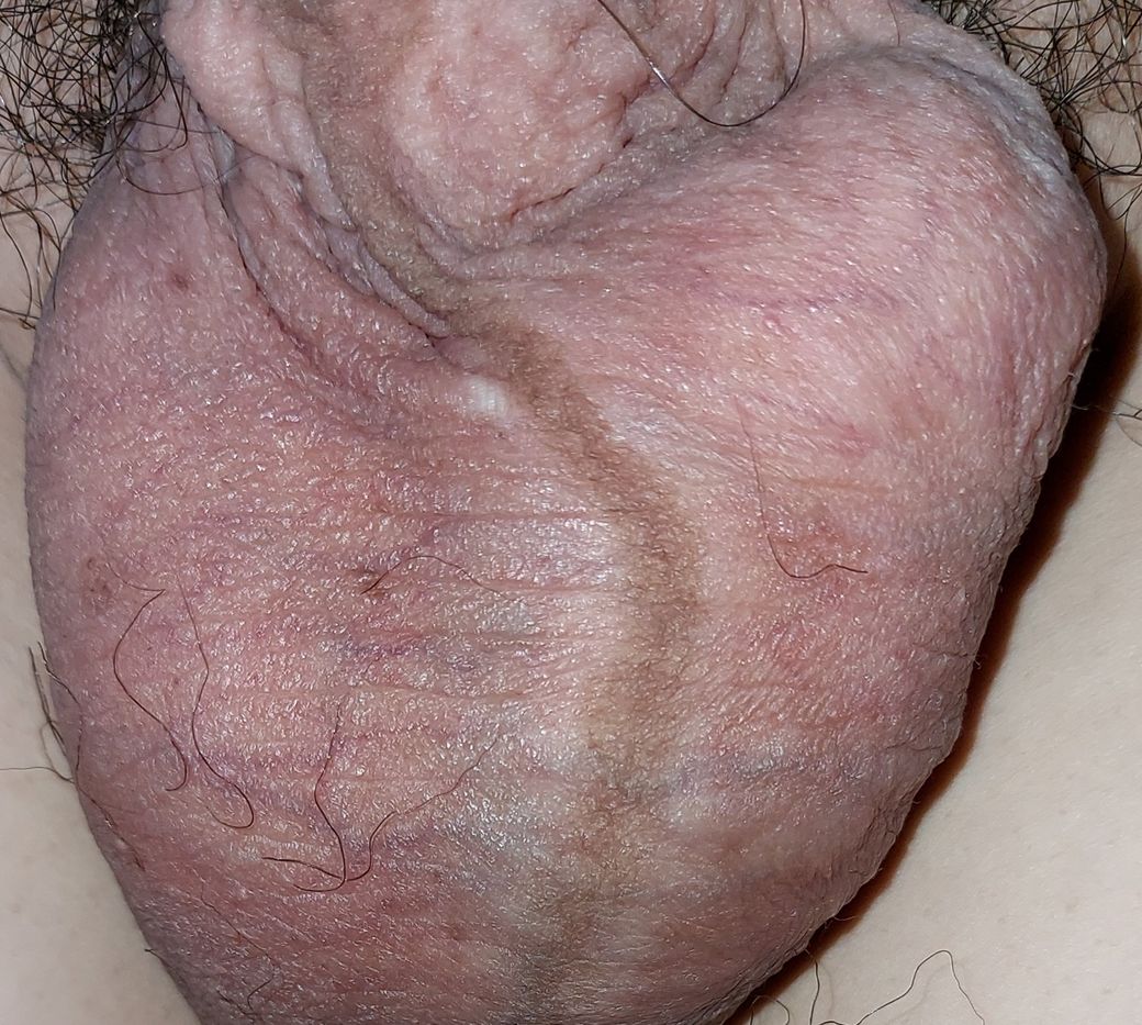 고환 중앙에 하얀점은 정관수술을 한 흔적입니다