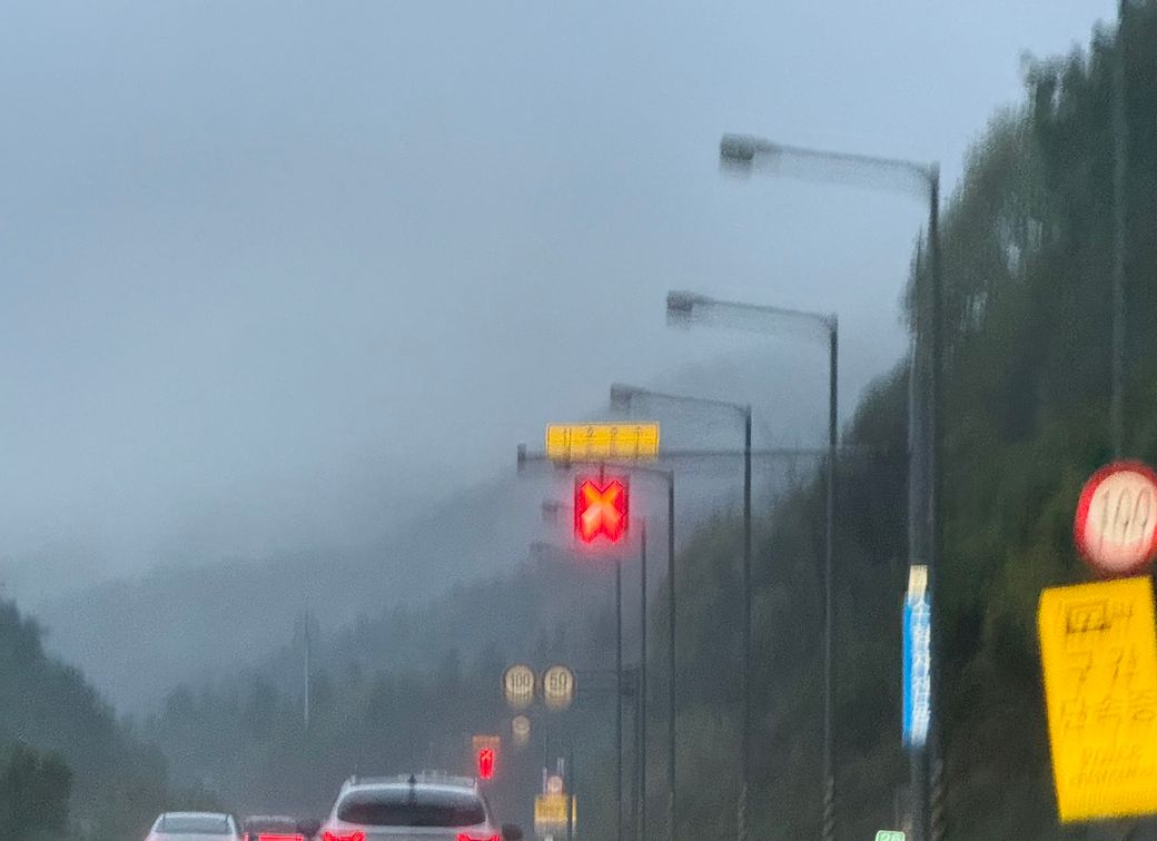 사진은 현재 가변차로에 X표시가 되어 있는 것으로 보아 통행이 불가능한 상태입니다
