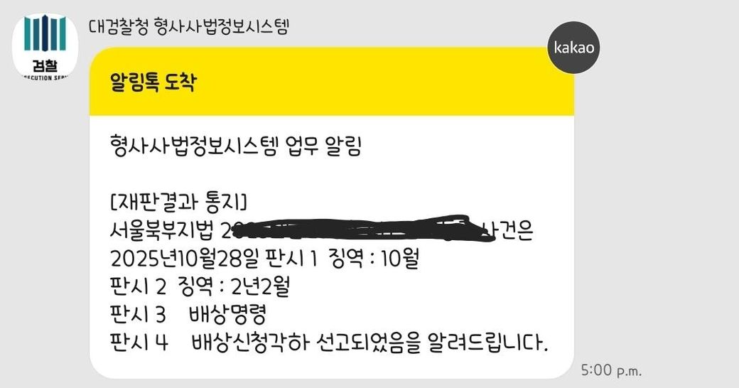 그리고 최근 공판이 열렸고 1심 결과를 카톡과 같이 받았고, 현재 피고인과 검사의 항소 요청으로 2심이 열릴 거 같습니다.