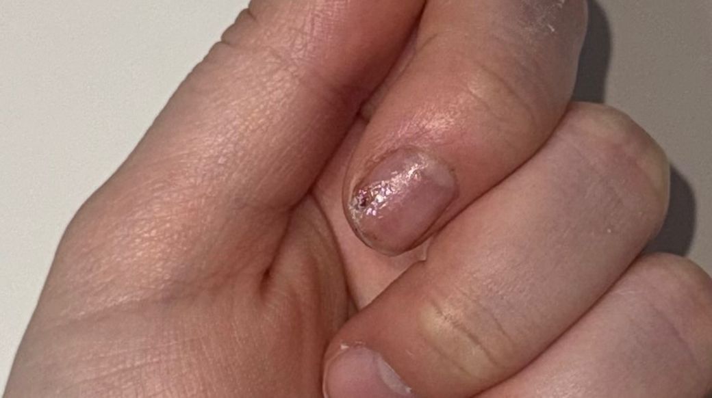 사진상 손톱판이 일부 손상되고 손톱 아래 연부조직(손톱바닥, nail bed)이 노출된 상태에서 접착성 보호막(프리덤폼)이 상처면과 유착된 상황으로 보입니다. 이 경우 무리하게 뜯으면 손톱바닥 손상과 출혈, 2차 감염 위험이 있습니다.