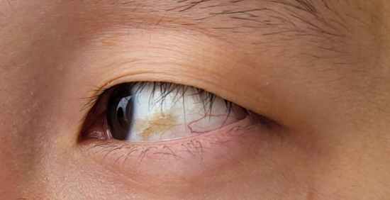 결막에 색소침착으로 보입니다.