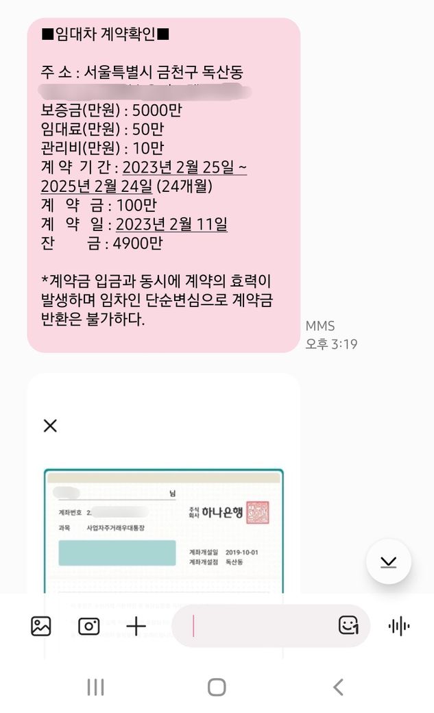 임대인과도 나중에 직접 통화를 하게 됐는데 (계약금 100만원 입금 당시엔 보지도 못했고