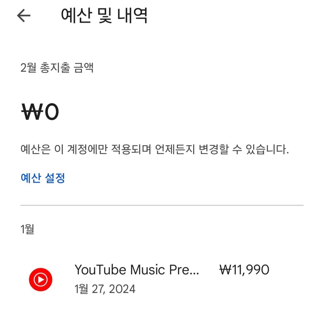 현재 유일하게 정기결제 중인 유튜브 뮤직의 결제일도 내일입니다.