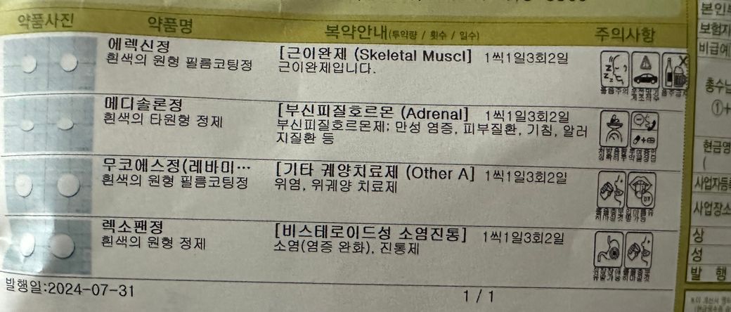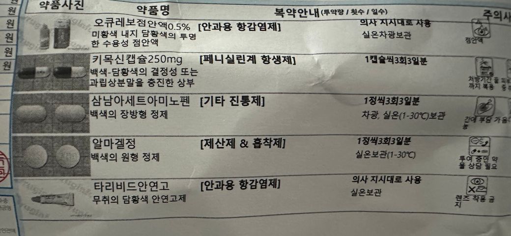 다래끼 째고 와서 받은 약이랑 뒷목이 아파서 치료하고 받아온 약입니다. 혹시 같이 복용하면 안된다거나 주의할 부분이 있을까요??