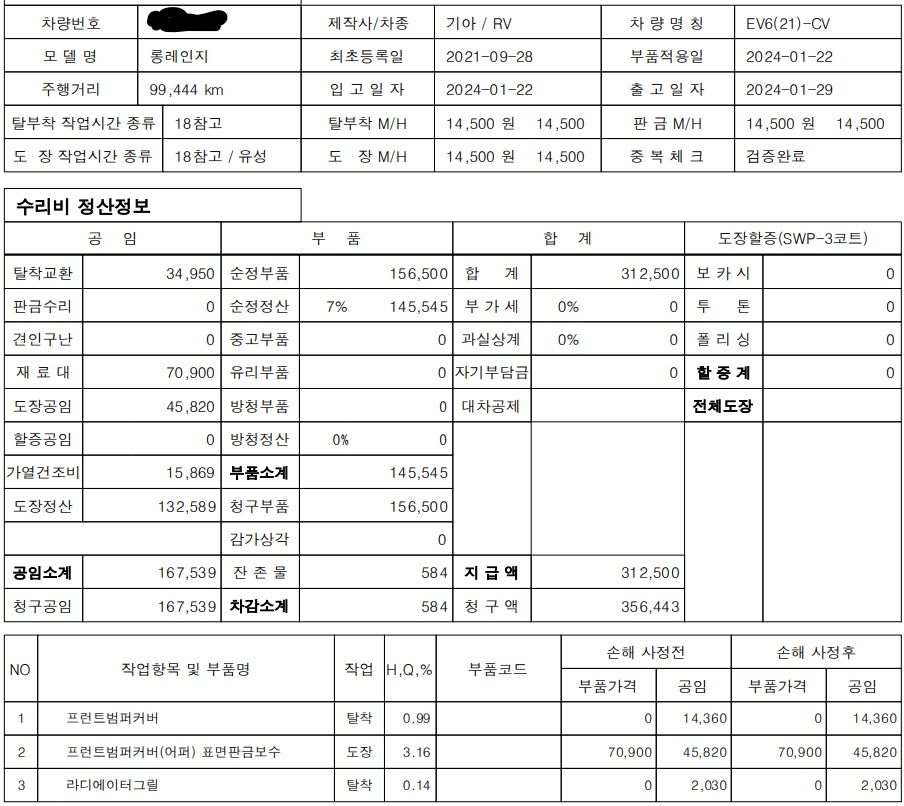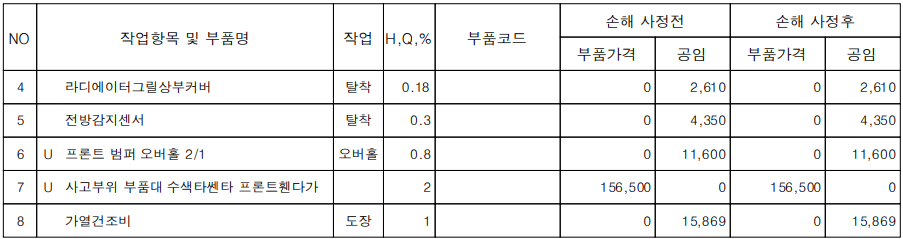 차알못이라 잘 모르겠는데 앞범퍼 전체가 아닌 파손된 부분만 보수 후 탈착했다는건가요?