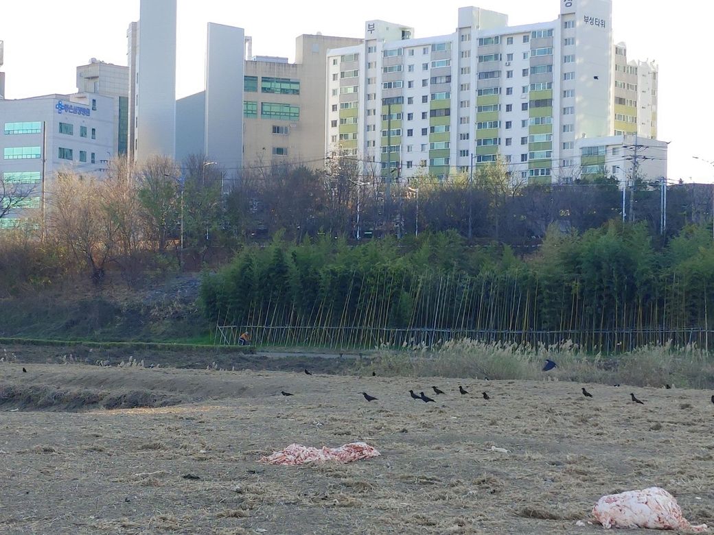요즘 까마귀들이 고기찌꺼기를 뿌린 땅에 찾아와서 빼앗아 먹다보니 독수리들이 못오고 있더라고요.