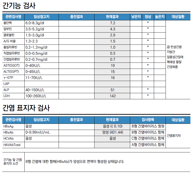 저는 45세 남성이고, 먼저 전반적인 건강상황을 보여드리겠습니다.