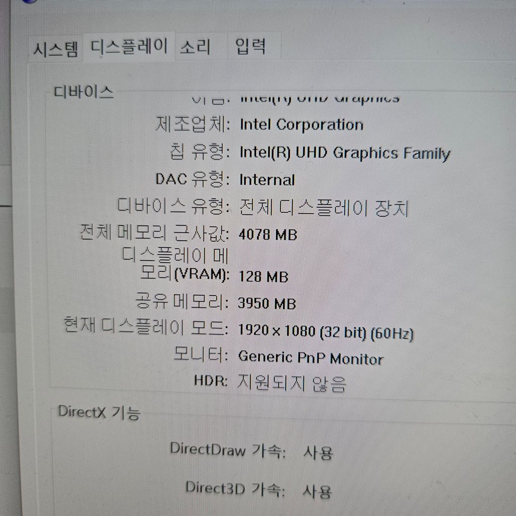 내장그래픽을 사용하고 있어 제 성능이 나오지 못하고 있습니다.
