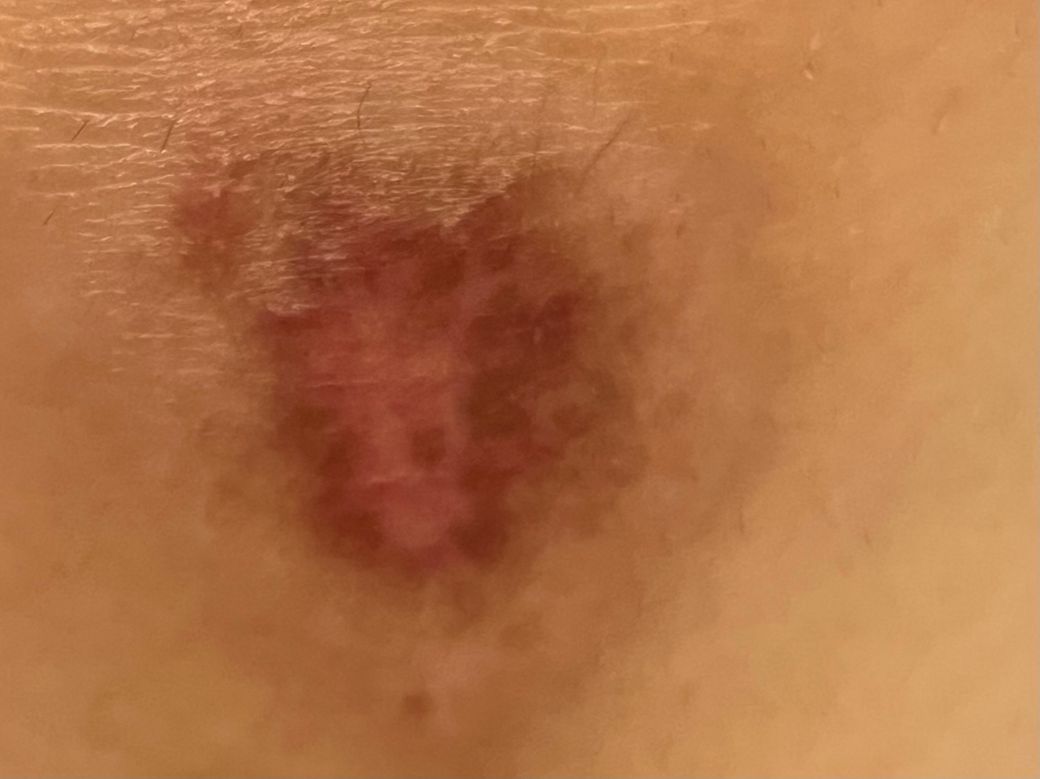 현재 저렇게 검붉은 자국과 미세하게 튀어나옴이 있습니다. 저 자국이 무엇인지 궁금합니다.
