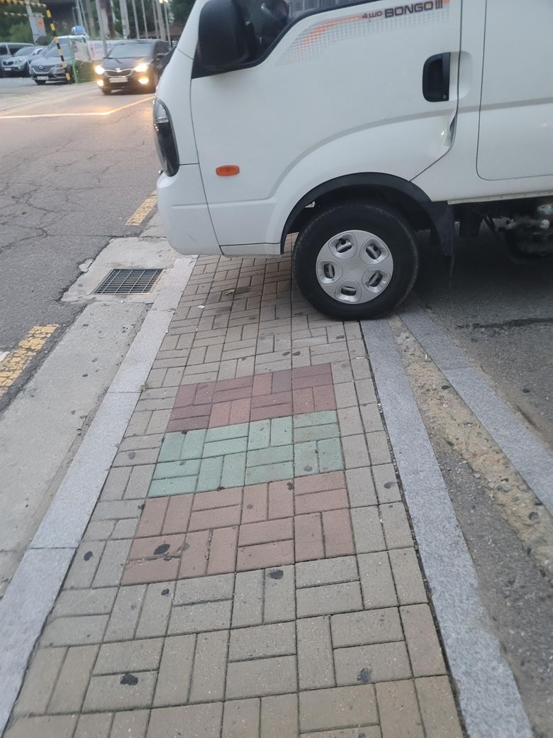 사진처럼, 사람이 건너야 하는 도보인데 아예 차들이 가로막고 있어 통행이 어렵습니다. 이렇게 도보를 침범하여 주차하는 차들은 법적으로 문제가 없는지 궁금합니다.