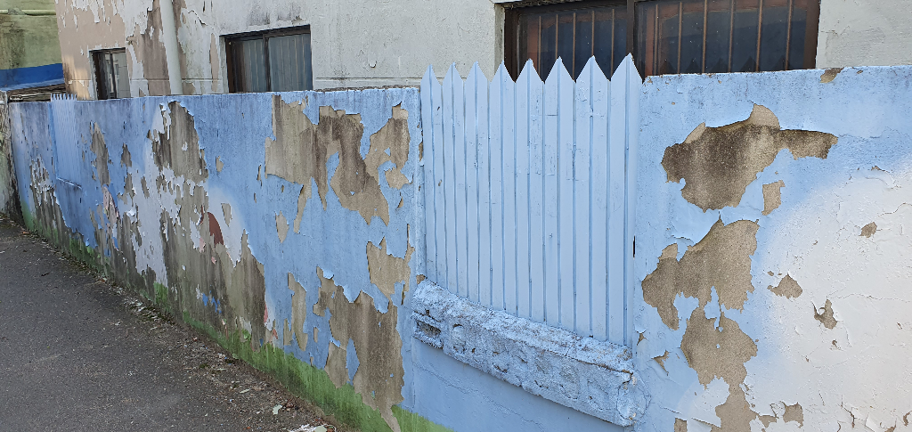 기존의 도료를 다 긁어내는 작업이 선행 되어야 하고, 되도록 맑은 날이 지속 되어서 벽면에 수분이 거의 없을 때 작업하는게 좋습니다. 벽화 봉사를 많이 해보셨다면 아시겠지만 페인트는 부족하게 발라졌다고 느껴지더라도 항상 얇게 2~3회 발라주셔야 합니다. 바탕면이 될 페인트로 적어도 2회 발라주시고 벽화를 그려주시는 것을 추천합니다.