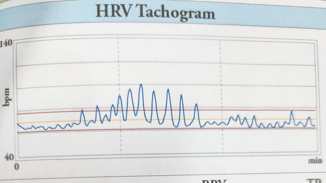 최근 불안증상 및 신체화증상등으로 정신과에 내원해 자율신경검사를 하였는데 심박변이도(첨부사진 참조)에서 범위를 초과한 게 많아 검사해석이 안 된다고 하시면서 이 경우에는 심장내과쪽 진료를 권한다고 합니다.