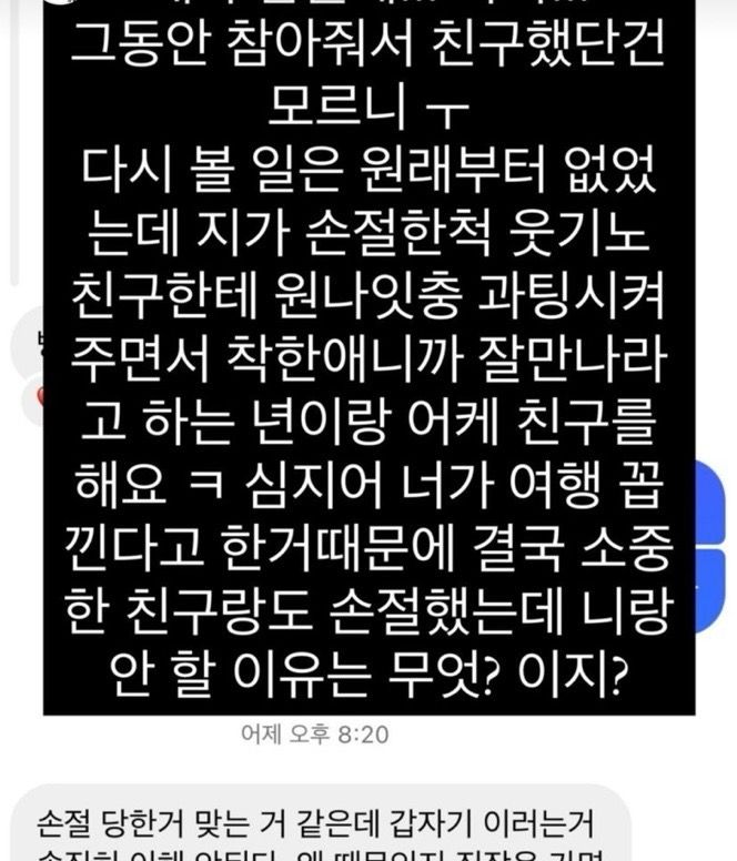 지인이 다른 사람과 저에대해 험담 한 내용을 캡쳐해서 본인 인스타 스토리에 올렸습니다. 내용은 ‘00씨 지능에 문제있나?‘, ’*신 나같아도 쪽팔려서 숨는다‘